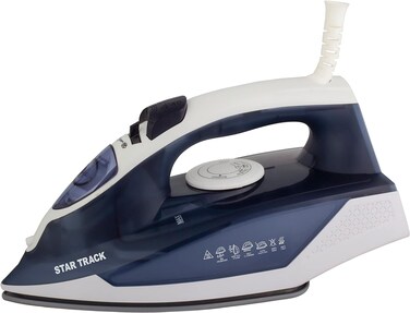 Star Track Steam Iron 2200W, Ssinr2200- Bw Water Tank Capacity 280ml Iron, Double Ceramic Coating Auto Shut Anti Drip Function Self Cleaning Mode