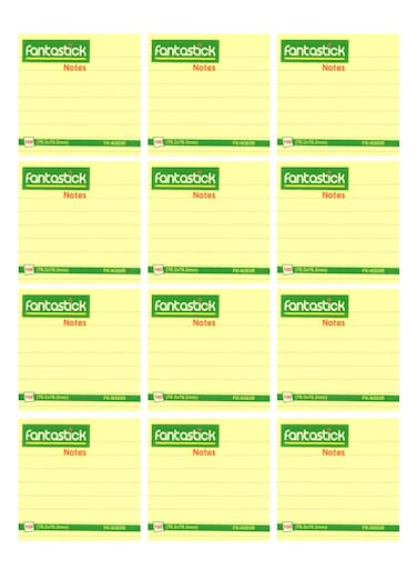 Fantastick 12-Piece Ruled Sticky Notes 3x3 Inch Size Yellow