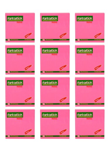 Fantastick 12-Piece Sticky Notes 3x3 Inch Size Neon Pink