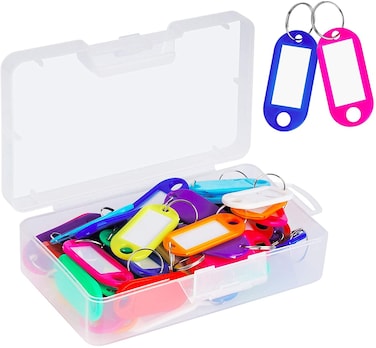 Lavish 50 Pack Plastic Key Tags With Container, Key Labels With Ring And Label Window, 10 Colors