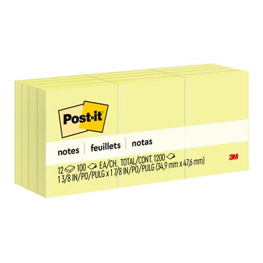 Post-it Notes Canary Yellow 653. 1.5 x 2 In (38 mm x 51 mm) 100 Sheets/pad 12 Pads/Pack