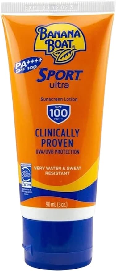 Banana Boat Sport Ultra Sunscreen Lotion, SPF100-UVA/UVB Protection, Clinically Proven, Very Water & Sweat Resistant, Lightweight, Non Greasy, Quick Absorption, Protection From Skinburn Damage, 90ml