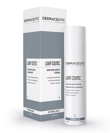 - Dermaceutic Light Ceutic Skin Toning Night Cream stimulates skin radiance and evens out the complexion. Light Ceutic is recommended for dull skin and irregular complexion.
