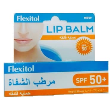Flexitol Lip Balm SPF50+ is a concentrated formula containing a synergistic blend of ingredients specially designed to hydrate lips, keeping them smooth and healthy looking. It contains 2.5% urea which removes dead skin cells to allow moisturizing emollients to access deep into skin to replenish lost moisture. Petrolatum sticks to skin and works like a barrier to prevent further moisture loss from dry lips and keeps balm on site of application. Menthol acts as analgesic to alleviate the soreness and discomfort associated with dry lips.