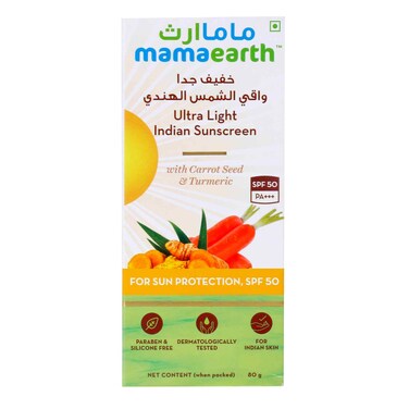 Mamaearth Ultra Light Indian Sunscreen SPF50 PA+++ 80ml