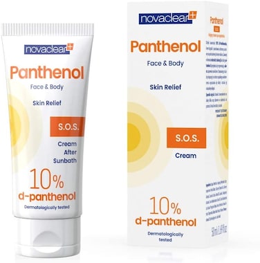 - <li>Panthenol, burns, sunburn, sun irritated skin, skin relief, Vitamin E, Aloe Vera, long-lasting moisturization. after sun, hydration, protective layer, sun<li>Easy to clean and maintain<li>Cream soothes and leaves a protective layer on the sun-irritated skin<li>Directions Apply Cream liberally onto your skin several times a day