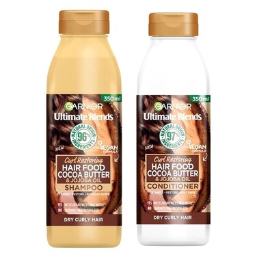 Garnier Ultimate Blends Hair Food Cocoa Butter Shampoo And Conditioner 350ml+350ml White