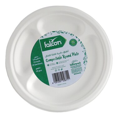 Falcon Bagasse 3 Section Round Plate 10inch 10 PCS