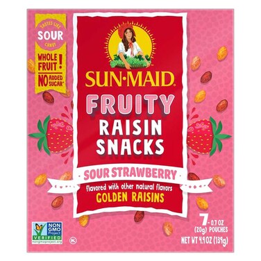 Sun-Maid Fruity Sour Strawberry Flavoured Golden Raisin Snacks, 139g
