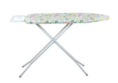 - light weight, ironing surface 110*33cm high quality frame, cotton cover and 10mm sponge pad for longer durability maximun steam penetration, mesh top allows steam to vent fold flat for storage iron rest holds iron securely