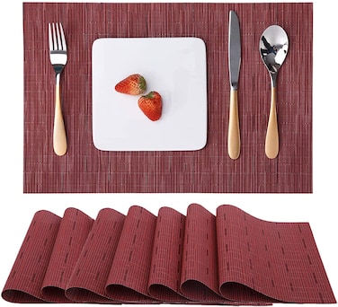 Maroon Placemats [Set of 4] Heat Resistant Cloth Place Mats for Dining Table Mats, Restaurants Party Decoration [45 x 30 cm]