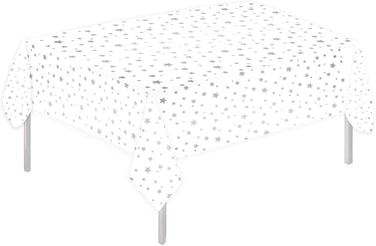 - PACKAGE INCLUDES- 1 Piece of silver star design Disposable Tablecloth, measures 137 x 183cm (54" x 72")