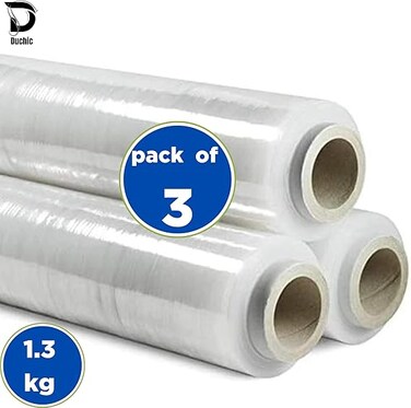 Duchic, [3 Roll] Clear Stretch Film Wrap - 500mm Heavy Duty Plastic Shrink Wrap for Pallet Wrap, Packing, Moving and Packaging - Cling Wrap, 1.30 kg, 400g core