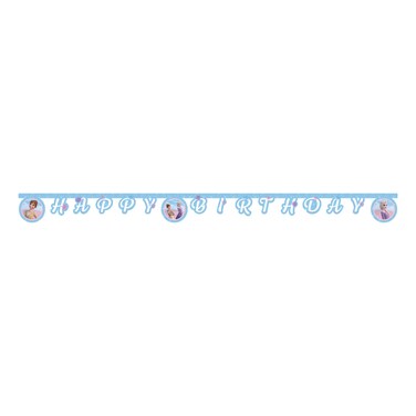 The Disney Frozen 2 Wind Spirit Themed Happy Birthday Die-Cut Banner in blue is the perfect decoration for a Frozen-themed birthday party.