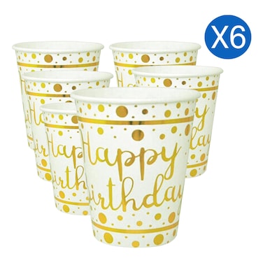 Gold Foil Happy Birthday Printed Paper Cups 236ml 6 PCS