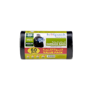 Hotpack Heavy Duty Black Garbage Bag 30 Gallon Medium 65x95cm, 40 Pieces Twin Pack Offer