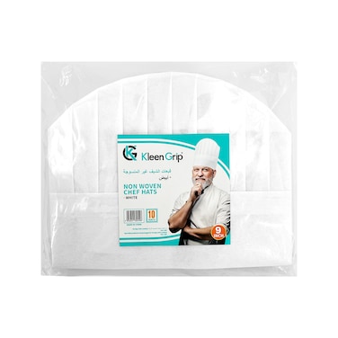 Kleen Grip Disposable Chef Hats White 9" 60gsm non woven 10pcs/Bag. This hat will help to keep your kitchen sanitary by covering the heads of your employees, helping to prevent hair and sweat from contaminating your food. Not only does it help with hygiene and comfort, it provides your staff with a clean, professional look behind the scenes. With its crisp, neat appearance and highly functional design, you can't go wrong with this chef hat!