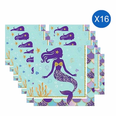 Bring a touch of enchantment to your table with these Shining Mermaid Printed Napkins. Each napkin measures 33x33cm, making them the perfect size for any occasion. With 16 napkins in a pack, you'll have plenty to set a magical table for your guests.