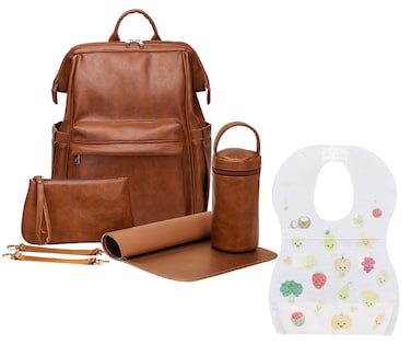 - High-Capacity backpack set baby foldable waterproof vegan pu leather diaper bag with changing pad. Backpack set with changing pad, clutch bag and tissue bag. Star Babies disposable bibs provide a convenient solution for meal time at home or on the go. The bibs feature a crumb catcher pocket and adhesive strip to hold them in place. They come in a convenient pouch for easy storage.