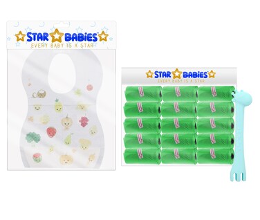 Star Babies Buy 2 Get 1 (Disposable Bibs 30, Scented bag 15, Silicon Spoon 1pc)