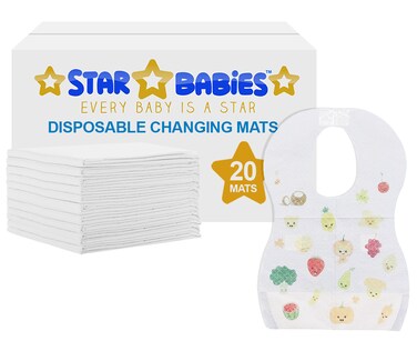 Star Babies Combo Pack (20pcs Dispsosable Changing Mats + 20pcs Disposable Bibs)
