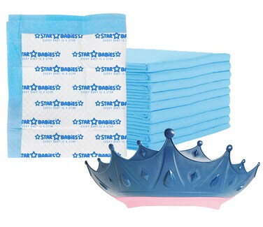 Star Babies Pack of 2 (15pcs Printed Disposable Changing Mats + Kids Crown Shower Cap)