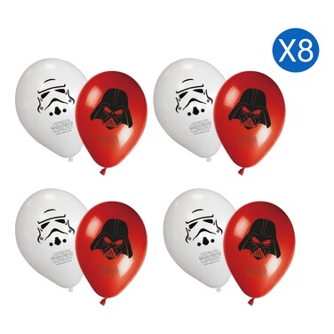 Each pack includes 8 multicoloured balloons featuring iconic Star Wars characters and designs. These balloons are made from high-quality latex and are sure to add a fun and festive touch to your celebration.