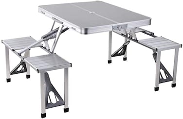 This Four Seater Foldable Table is perfect whether it's for a party, picnic, camping, public event or a bit of DIY either indoors or outdoors, this lightweight 4 Seater Foldable Table can be transported easily with its carry handle and set up in an instant. When you're finished, it folds away for easy storage. Product Features: Brand: Class Color: Silver Table Top Material: MDF Chair Material: Aluminum Frame Material: Steel Legs Material: Aluminum Table Dimensions: 85.5 x 65 x 67 cm Chair Dimensions: 29 x 27 x 40 cm Weight: 6.8 Kg Easy to fold and unfold Easy to Store Convenient carrying handle