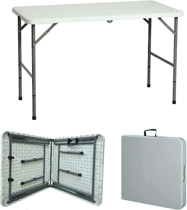 Heavy Duty Multipurpose Folding Table Portable Plastic Folding Table Picnic Dining table Centerfold Ideal for Crafts Outdoor Events Light and Durable Convenient Carry Handle (L122 x W60 x H74 CM)