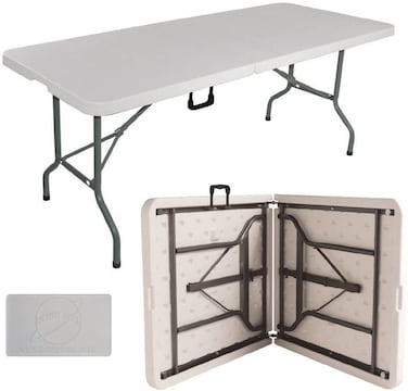 Product Description: Heavy duty superior quality table is suitable for both indoor and outdoor use. Made from high-density blow moulded plastic with powder coated steel framework. The easy-to-maintain and durable smooth surface is very easy to keep clean. Along with various other uses these table and chairs are ideal for the garden, parties, bbq's, market stalls and trade shows. The tables are easy to set-up and fold-away when not in use. The table can be folded and locked and comes with a handle for easy transportation.