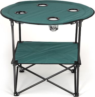 Get the most out of your outdoor life with the Royalford round camping table. Designed and manufactured from the finest quality materials, this foldable round camping table is just the thing you need for your next outing. Be it in the mountains, hills, community park, beach or in your backyard garden, this lightweight table is durable and maintenance free. It allows you to enjoy your time with your friends and family. This multi-function table is appropriate for indoor or outdoor parties, picnics, and fishing. This product features strong and sturdy iron tubes with washable Oxford cloth. It will not crack, chip, break or peel. The iron tube has an impressive weight capacity and is strong enough to withstand the weight without bending, which keeps the table in place. The tabletop is equipped with four cup holders. The portable folds flat for easy storage and can be easily assembled and disassembled. The camping table opens to a standing position and folds flat in an instant, helping you save space and reduce hassle. A carry bag with handles is included in the package for easy transport, storage, and to keep it comfortable in your hand. The round camping table measures 70x60 cm and weighs 2.2 kg.'