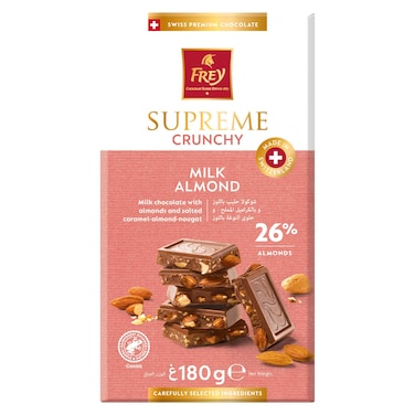 Frey Supreme Crunchy Almond Milk Chocolate Bar with Salted Caramel Almond Nougats 180g