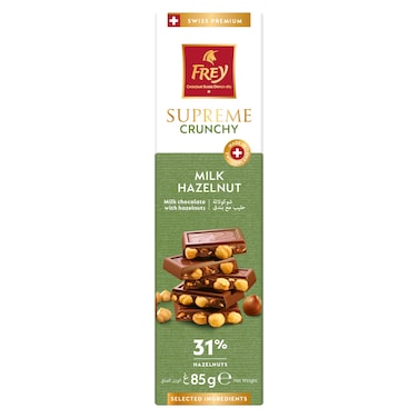 Frey Supreme Crunchy Milk Hazelnut Chocolate Bar 85g