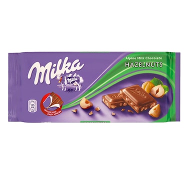 Milka Hazelnut Flavoured Alpine Milk Chocolate, 100g