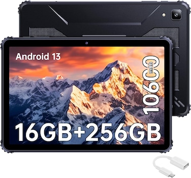 CUBOT Tab KingKong Android 13, Rugged Tablet, 10.1'' With 16GB RAM+256GB ROM/1TB Expandable, FHD+ Display 10600mAh, 8MP+16MP Camera, Waterproof Tablet 4G Dual SIM+5G WiFi Robust Tablet