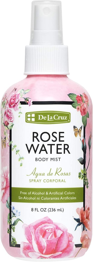 De La Cruz Rose Water Spray is a body splash with a clean, pleasing aroma of fresh roses. It can be used all over the body or can be added to bath water for enhanced refreshment. This product is vegan and has not been tested on animals.