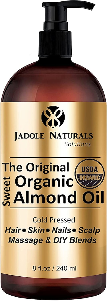 Jadole Naturals The Original Gold Label Organic Sweet Almond Oil USDA Certified For Skin Hair Scalp Massage 240 ml