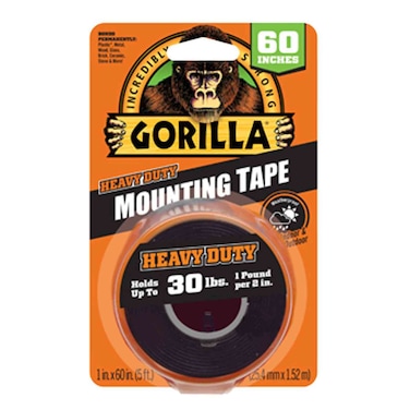 - Gorilla Heavy Duty Mounting Tape is a double-sided tape that mounts in an instant, for a long-lasting, weatherproof bond