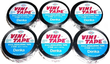 PVC Electrical Insulation Tape (6-Rolls) (Black) PVC Electrical Insulation Tape (6-Rolls) (Black) Description* VINI-TAPE is a Lead-Free & None DOP environmental electrical tape for all wire and cable joints rated up to 600 V. Characteristics High Quality VINI-TAPE is a good quality electrical tape inquality and has excellent resistance to corrosion. Due to a elastic tape backing and high quality design of the adhesive, the tape shall be applied to not only conform and produce a uniform covering in long term, but also prevent from flagging. The high quality of VINI-TAPE provides to relieve your amount of repair work. Excellent Workability VINI-TAPE has easy cut quality for a special process in the side of the tape. Therefore, VINI-TAPE helps you to improve the work efficiency further more. Cold Resistance With the fine resistance to cold temperature, the properties of adhesive maintain its quality. Excellent Storability VINI-TAPE tends to be stored in the warehouse which is even relatively in high temperature. VINI-TAPE is not deformed with high temperature and holds its shape. Good stock rotation is recommended. Wide Range of Colors Bright and clear nine standard colors identify diversify cables easily and accomplish good appearance after binding. Environmentally friend pressure sensitive adhesive We do not intentionally use any of the substances in EU regulations of RoHS and REACH on VINI-TAPE, unless the substance is in an application that is exempt under these regulations. *Claims are not verified. Uses Terminal processing of power-cables, wiring and insulation of electrical joints. Protection, binding, and identification of cables and pipes. Protection, repairs, and binding for homes, construction, tying works, and other uses. Bundling and repairing automotive wire harnesses.