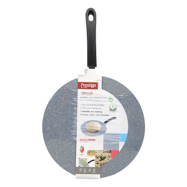 The Prestige Non-Stick Speckled Aluminium Concave Tawa Grey Granite 30cm is a high-quality cooking tool that is perfect for making delicious meals.