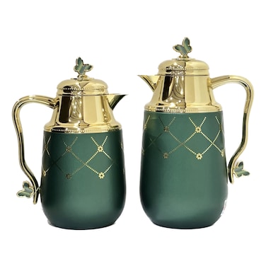 Home Maker Tea And Coffee Vacuum Flask QBC-Q333YZC95-H190 Green And Gold 700ml+1L 2 PCS
