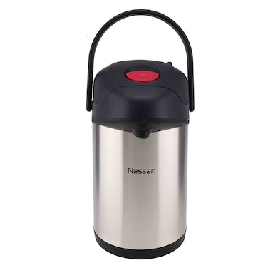 The Nissan Stainless Steel Insulated Pump Thermal Flask in Silver is a durable and stylish option for keeping your beverages hot or cold.