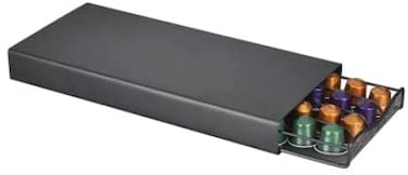 - Drawer design provides you more storage space. Large capacity, it can store 40 coffee capsules.