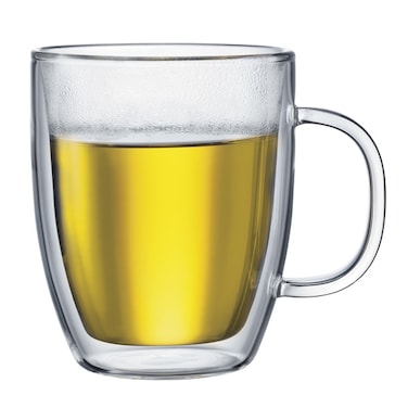 - With an insulated double wall and a convenient handle, Bodum Bistro glass stays cool to touch when serving hot beverages and prevents messy condensation with cold refreshments.