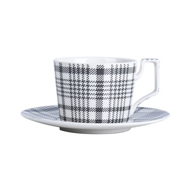 Ceramic Cappuccino Grid lines Coffee Cup Saucer Set
