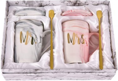 Dreamons Link Mr and Mrs Coffee Mugs - Wedding Gift -Ceramic Marble Cups 14 oz