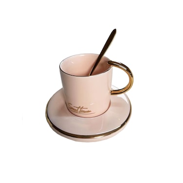 Gold Rim Round Ceramic Coffee Cup And Saucers Spoon Set