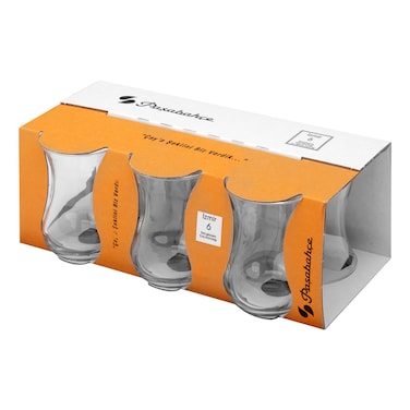 The Pasabahce Izmir Turkish Tea Glass Set includes 6 glass cups, each with a capacity of 165ml. These traditional Turkish tea glasses are perfect for serving hot tea in style.
