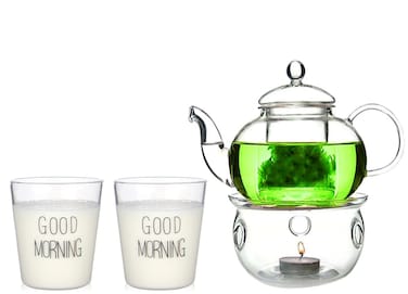 - Glass Teapot with Burner and Good Morning Printed Glass 2 Pcs set