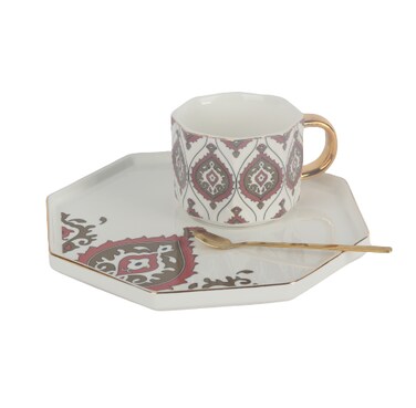 ZK Ceramic Coffee Cup with Spoon and Saucer Set (White)